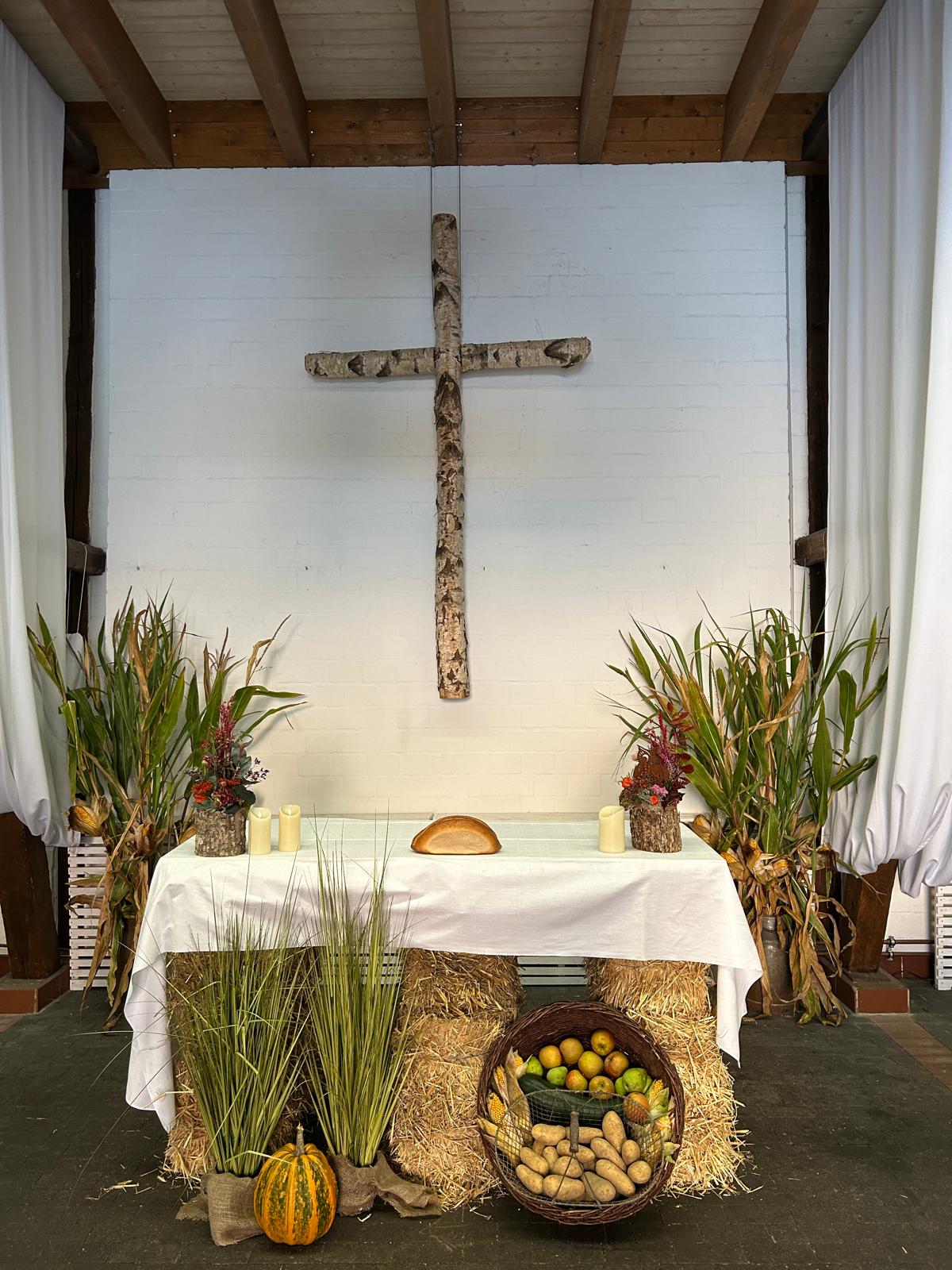 Eröffnet wurde die Veranstaltung am Morgen mit einem ökumenischen Gottesdienst. Der festlich geschmückten Altar wurde enenfalls von der Heimatgemeinschaft zuvor liebevoll herbstlich im Erntedank-Stil gestaltet.